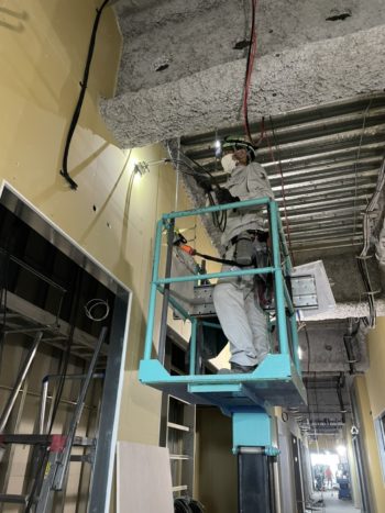 高所作業に乗ってるのは新入社員の杉谷くんです!